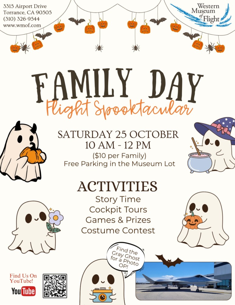 Calling all boos and ghouls to the Western Museum of Flight for a morning of stories, cockpit tours, games, prizes, and a costume contest (see below flyer).