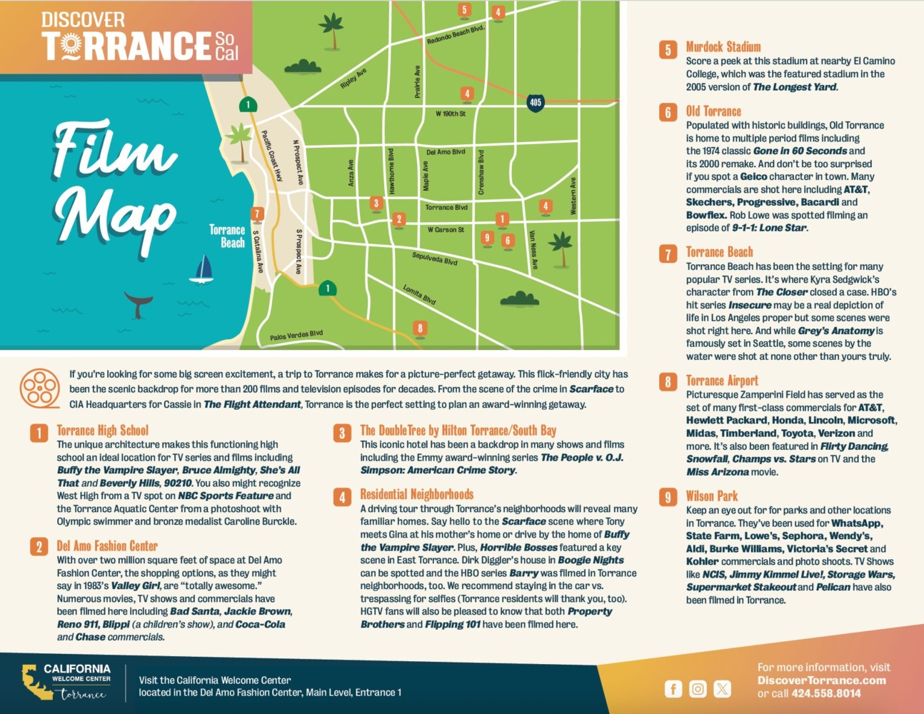 Speaking of maps, we have our very own Discover Torrance film map that will let you plan your Torrance tour of special movie, TV show and commercial sites.